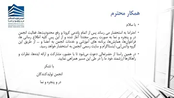 فراخوان آغاز به کار و دعوت به همکاری انجمن دروپنجره و نما