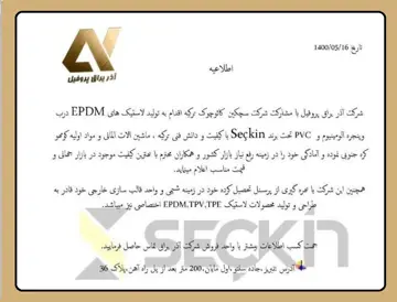 پنجره‌ایرانیان؛ آذر یراق پروفیل تولید لاستیک‌های EPDM دروپنجره آلومینیومی و یوپی‌وی‌سی را با برند سچکین (SEÇKİN) آغاز کرد.