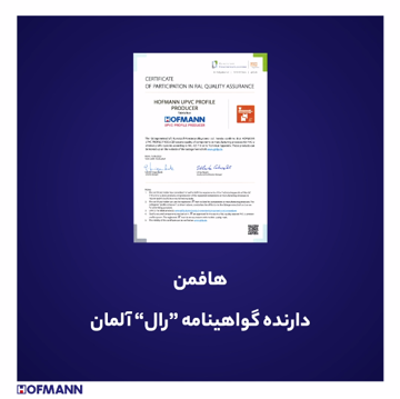 پنجرهایرانیان؛ گروه صنعتی هافمن به جمع شرکتهای برتر دارای گواهینامه RAL از موسسه GKFP آلمان پیوست.