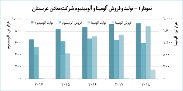 به گزارش فلزات آنلاین، شرکت معادن عربستان پس از شرکتهای EGA امارات متحده عربی و آلبای بحرین، سومین تولیدکننده بزرگ آلومینیوم در خاورمیانه به شمار میرود. نمودار 1، مقدار تولید آلومینیوم و آلومینای این شرکت را در 5 سال گذشته نشان میدهد. همانطور که در این نمودار مشاهده میشود، مقدار آلومینیوم تولیدشده این شرکت در سال 2018 به حدود 933 هزار تن رسید که نسبت به سال 2017، رشد 1.9 درصدی داشت. بااینحال، مقدار فروش آن در این سال 595 هزار تن گزارش شد که نسبت به سال 2017 بالغبر 8.9 درصد کمتر بود. این میزان از افت فروش آلومینیوم، ناشی از افزایش میزان مصرف آن برای تولید محصولات تخت و حاصل از نورد آلومینیومی بود.
