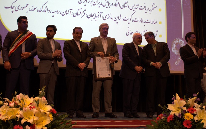 در انتهای این همایش، مدیرعامل آلوپن لوح تقدیر و تندیس کارآفرین برتر را از دستان دکتر ظریف دریافت کرد.