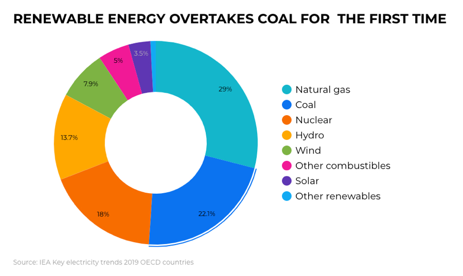 پنجرهایرانیان؛ گزارش آژانس بینالمللی انرژی در خصوص روندهای اصلی تولید برق در کشورهای توسعهیافته نشان میدهد که تولید برق از منابع تجدیدپذیر برای اولین بار در سال 2019 از زغالسنگ بهعنوان منبعی برای تولید برق پیشی گرفت.
