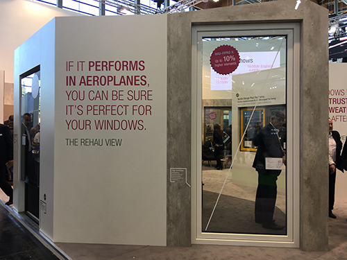 رهاو نوآوریهای خود را با شعار"THE REHAU VIEW" در استندی به مساحت ۸۶۰ مترمربع در سالن ۴A– غرفه ۱۲۳ به نمایش گذاشت. رهاو در این نمایشگاه، نقطه عطف جدیدی در صنعت پنجره را نشان داد.