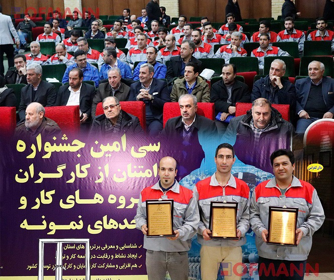 در این جشنواره آقای یوسف شادمنش بهعنوان کارگر نمونه و کارگروه خانواده بزرگ هافمن بهعنوان کارگروه برتر و نمونه انتخاب شد که آقای قاسم پناهی به نمایندگی از مجموعه هافمن جایزه و لوح کارگروه نمونه را دریافت کرد. در پایان دکتر حمیدیه بهعنوان مدیرعامل محترم هافمن تندیس واحد نمونه سال را دریافت کرد.