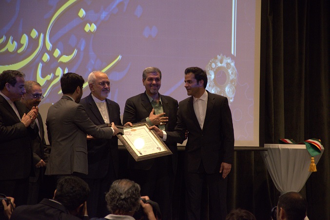 در انتهای این همایش، مهندس زرگر به نمایندگی از مجموعه وینتک لوح تقدیر و تندیس کارآفرین برتر را از دستان دکتر ظریف دریافت کرد.