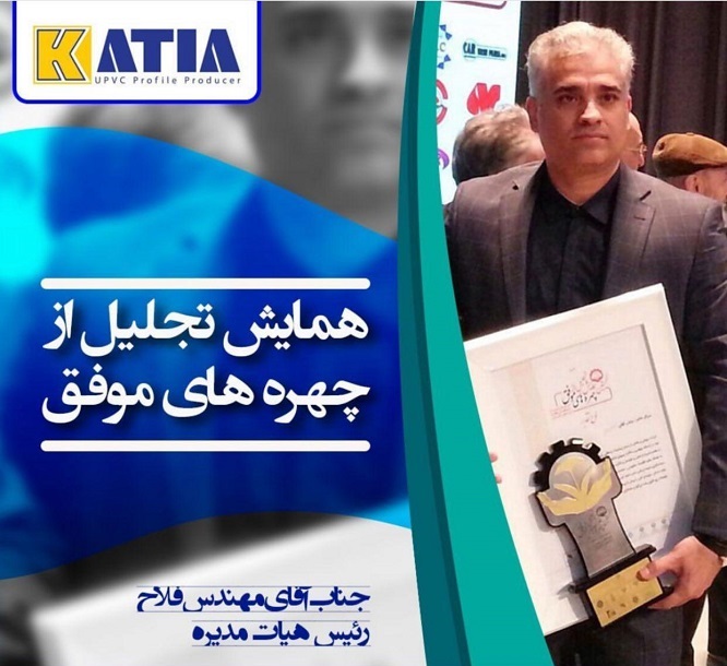 در نخستین همایش تجلیل از چهرههای موفق عرصه صنعت و تجارت استان البرز از مهندس علیرضا فلاح، مدیرعامل شرکت بهینه گستر فراتاب، تولیدکننده پروفیلهای دروپنجره یو.پی.وی.سی بانام تجاری کاتیا با اهداء لوح و تندیس ویژه تجلیل به عمل آمد.