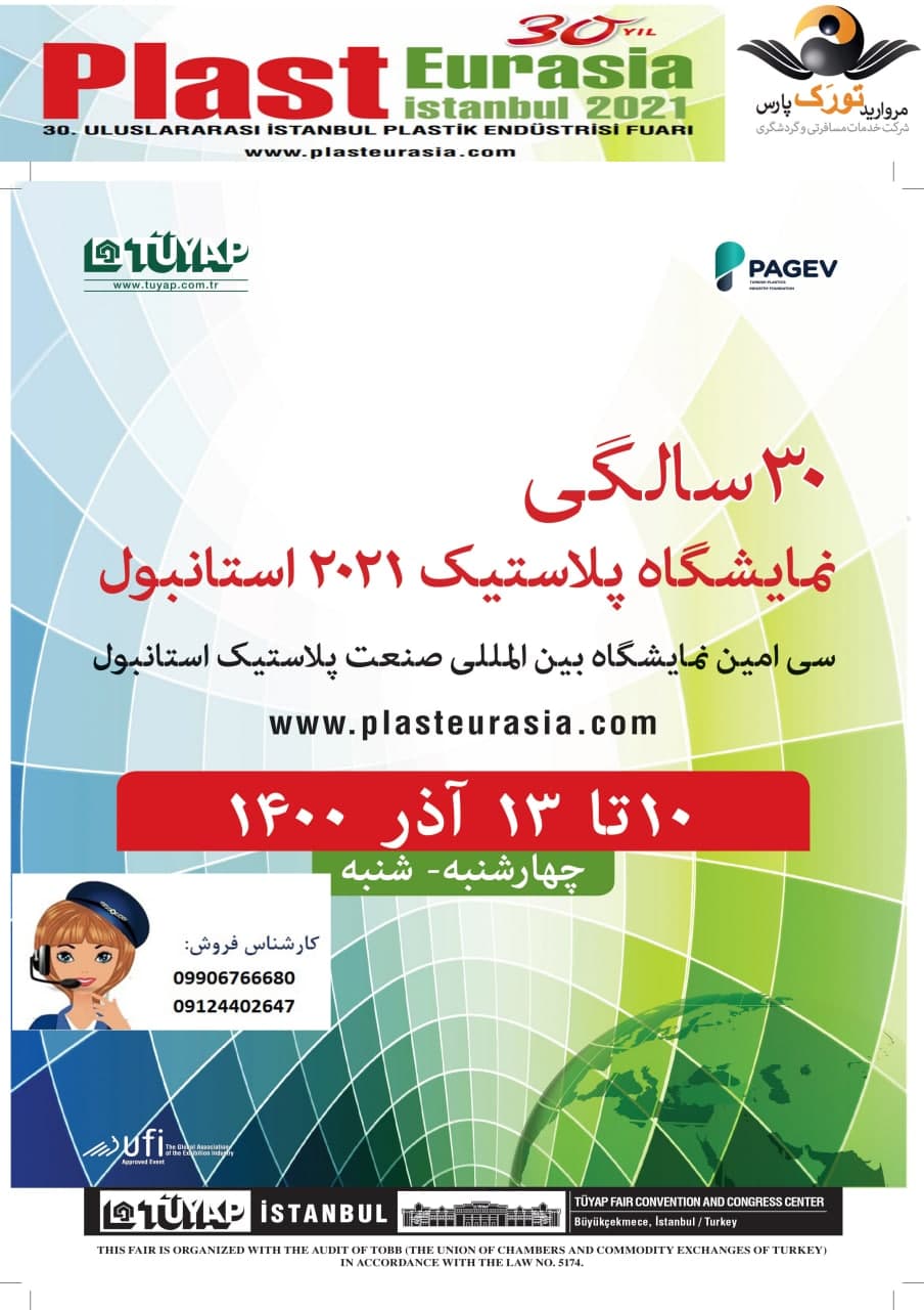نمایشگاه پلاستیک و صنایع وابسته اوراسیای ترکیه بزرگترین نمایشگاه پلاستیک است که در منطقه اوراسیا برگزار می شود. نمایشگاه Plast Eurasia 2021 با همکاری سازمان صنعت پلاستیک ترکیه برگزار می شود و فرصتی برای تعامل تجاری با سایر شرکت ها و برندهای بین المللی است. دراین نمایشگاه معتبر جهانی ماشین آلات تولید پلاستیک، مواد شیمیایی و مواد خام، ماشین آلات و صنایع کمکی، تجهیزات گرما و کنترل، قالب، hyrdraulic و پنوماتیک، روش های بازیافت و… ارائه می شود.