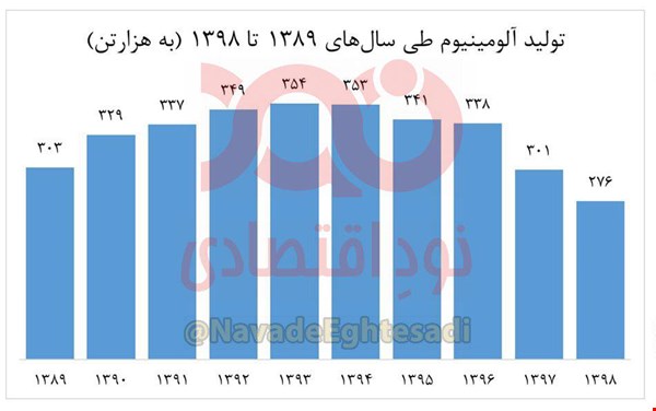 گفتنی است، ایران ازلحاظ منابع معدنی ظرفیت تولید سالانه ۱/۳ میلیون تن آلومینیم را دارد که تولید سال ۱۳۹۸ فقط معادل ۲۱ درصد ظرفیت بالقوه کشور است.